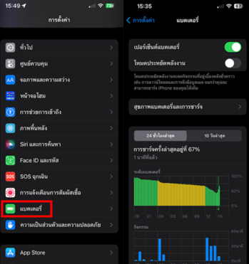 1.ไปที่ตั้งค่า > แบตเตอรี่ เพื่อตรวจสอบดูว่ามีแอปพลิเคชันไหนใช้งานมากเกินความเป็นจริงบ้าง