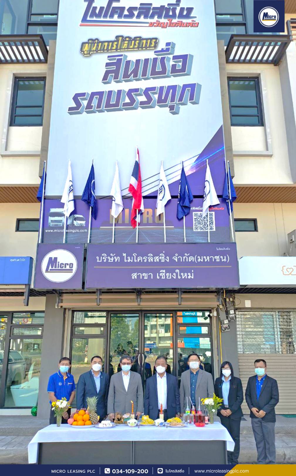 On November 18, 2021, Micro Leasing was honored by Mr. Wet Nuchcharoen, Chairman of Risk Management Committee and Audit Committee. presided over the opening ceremony of the branch (4th from left) along with Mr. Wisan Buranasantikul, Managing Director (3rd from left), Mr.Preeda Iramanirat, Deputy Managing Director (5th from left), Mr. Wisart Vetaya Nukul, Chief Accounting and Financial Officer (2nd from left), management team, and staff attended the opening ceremony of the Chiang Mai branch. This will be Micro's 18th branch in 2021.